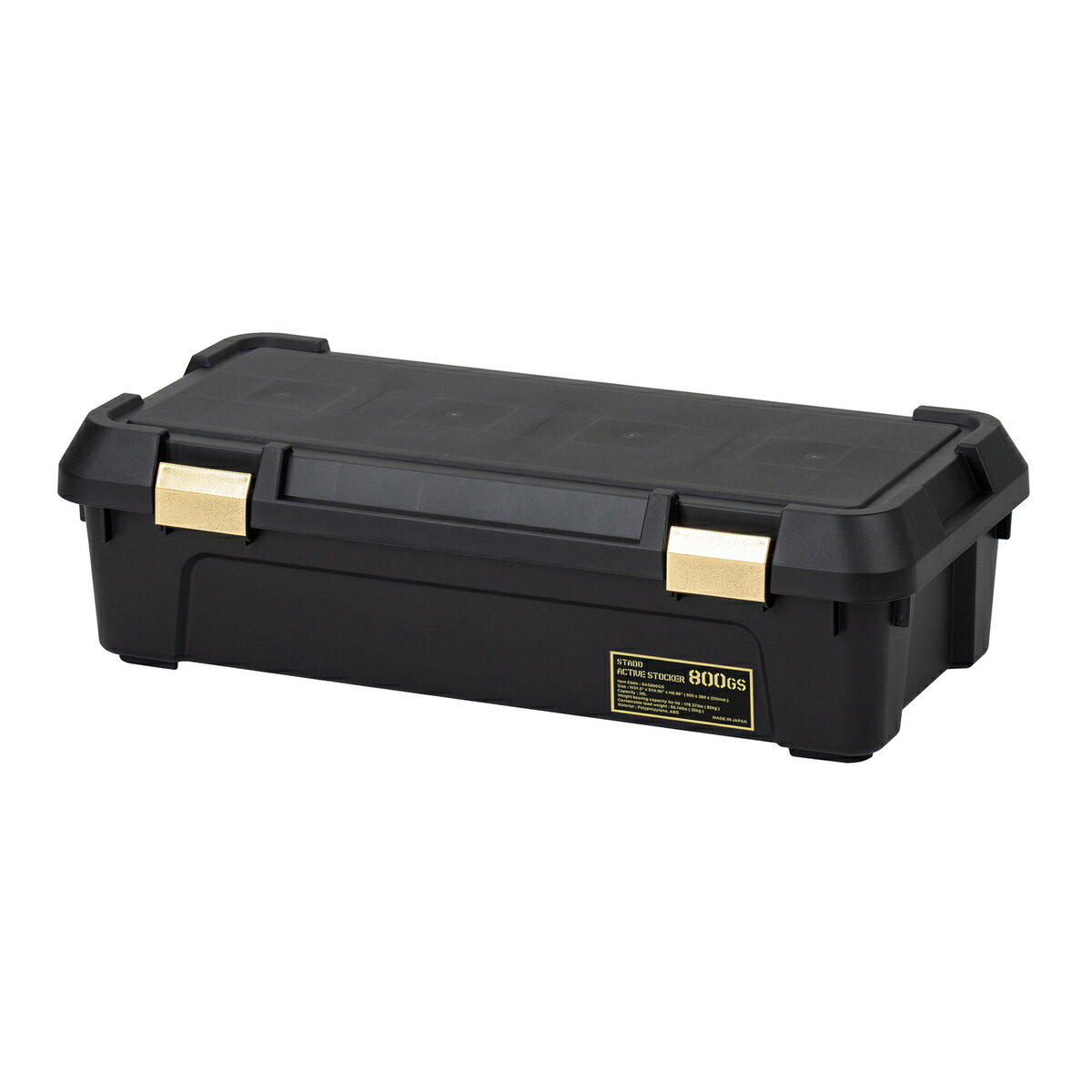 仕様 色:ブラック 材質:本体・フタ/ポリプロピレン(耐候性)、バックル/ABS樹脂(転写箔/アルミ、アクリル樹脂) 外寸(約):W800×D380×H225mm 内寸(約):W699×D299×H174mm 耐荷重(約):80kg(フタ) 浅型 商品説明 屋外での使用でも退色や劣化が少ない耐候性材料を使用したアクティブストッカー。 ゴールド箔仕様のバックルでシンプルながらも贅沢な印象。 積み重ね可能です。 ※品質向上のため予告なく仕様を変更する場合がございます。パッケージのリニューアル等につき、商品画像が異なる場合がございます。商品画像の色合いは、画像処理上、若干異なる場合がございます。
