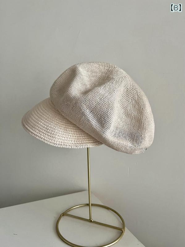 ベレー帽 おしゃれな レディース リネン 軽量 通気性 ひさし キャップ 画家の 帽子 レディース 夏の ベレー 帽 八角形の 顔 小さい レトロを 表示