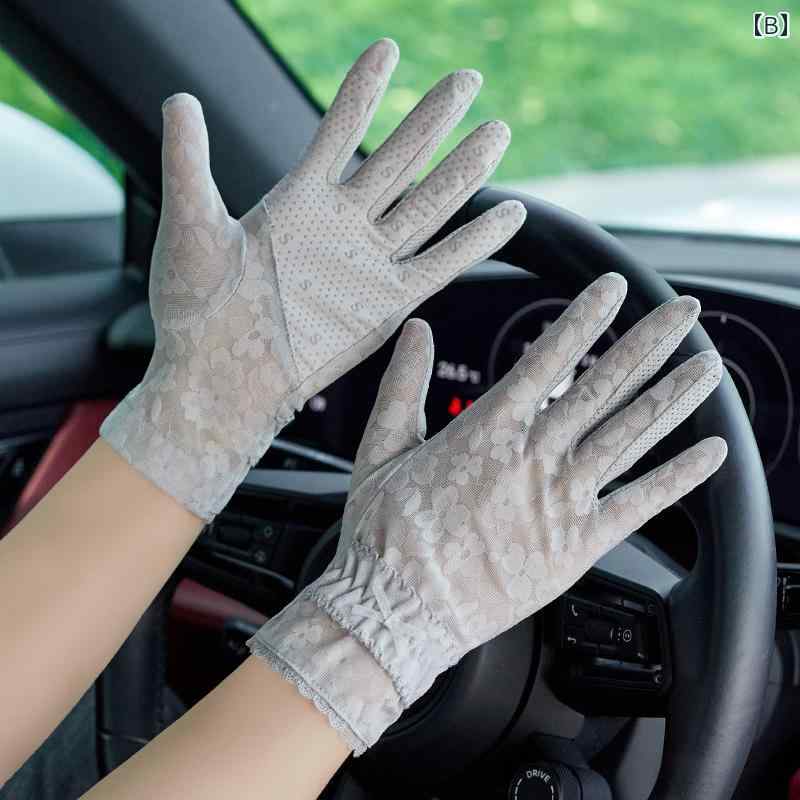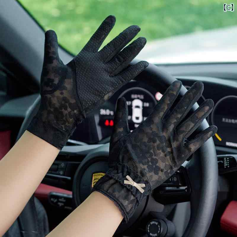 レース 手袋 レディース 薄手 夏用 フル フィンガー レース ショート 日焼け防止 手袋 女性用 薄型 通気性 サイクリング 運転 滑り止め タッチ スクリーン スリム