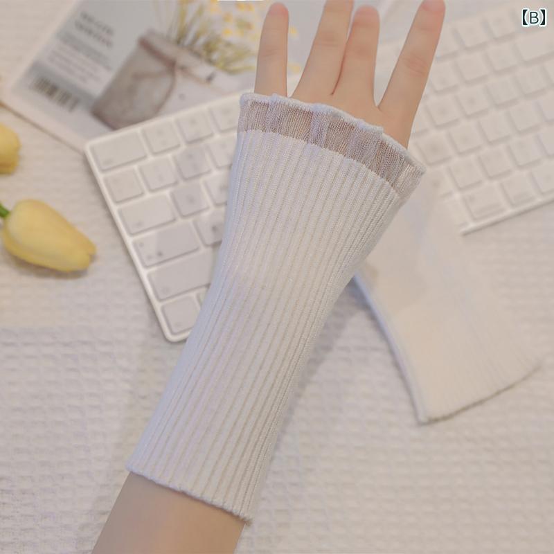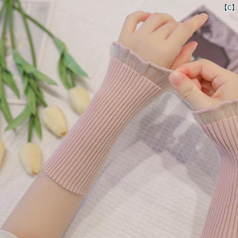 アームスリーブ レース フェイク カフス レース トリム 継ぎ 合わせ 袖が 付いた 防風性の ある 手首と 腕の 汚れ 防止 ニット スウェットシャツ。