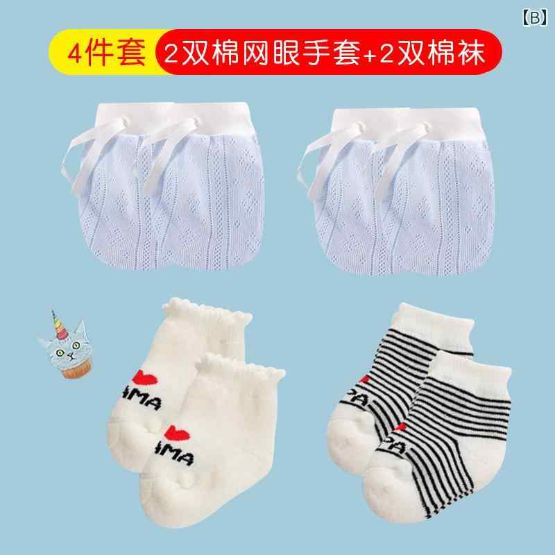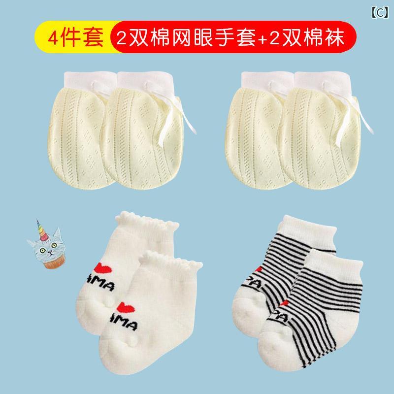子供用 手袋 ベビー用 傷 防止 手袋と 足 カバー 噛みつき ハンドガード 新生児用 ソックス 0 ~ 1歳用 夏用 メッシュ コットン
