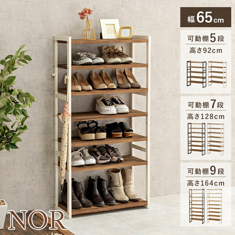 【レビューで特典あり】シューズラック 幅65cm 選べる棚5段/棚7段/棚9段【NOR】ノア(ラック 省 スペース 木製 おしゃれ スリム 収納 白 大容量 下駄箱 靴 狭い 玄関 薄型 可動棚 靴箱 コンパクト シューズ収納 オープン収納 ホワイト ブラウン)