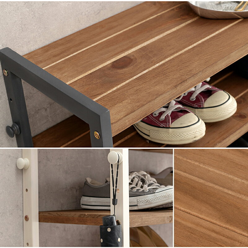 お買い物ガイド 天然木パインを使用したナチュラルでおしゃれな木製シューズラック。 フレームと棚の色が違うツートンカラーがハイセンス。 可動棚で高さ調節できるのでスニーカー、ブーツ、長靴、ハイヒールなど様々な靴に対応。 オープンラックとしてリビング収納として、玄関以外でもお使いいただけます。 【商品サイズ(約)】 棚5段:幅65(フック含む 67)×奥行28×高さ92cm 棚7段:幅65(フック含む 67)×奥行28×高さ128cm 棚9段:幅65(フック含む67)×奥行28×高さ164cm 【梱包サイズ(約)】 棚5段:65×33×19cm(7.1kg) 棚7段:67×32×26cm(6.3kg) 棚9段:88×33×30cm(11.1kg) 【材質】 主材:天然木(パイン) 表面加工:棚板:オイル仕上げ フレーム:ラッカー塗装 【生産国】中国 【備考】組立品 メーカー希望小売価格はメーカーカタログに基づいて掲載していますサイズ一覧