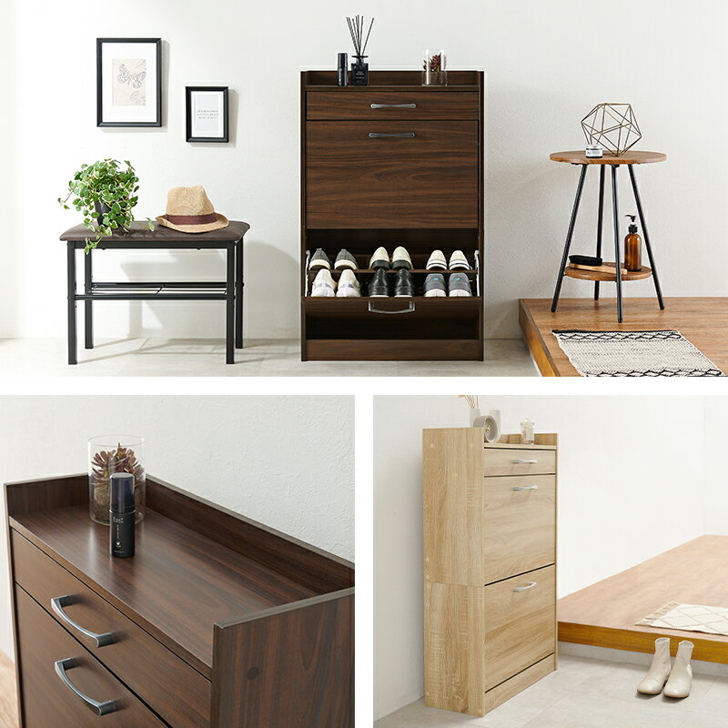 お買い物ガイド スリムなのに大容量収納できるシューズラック。 奥行が24cmのスリム設計なので、 省スペースの玄関にも圧迫感なく設置できます。 可動式の棚板なので、 靴が見やすく取り出しやすいのもポイント。 棚板はお好みの高さに調節できるので、 ハイカットのスニーカーやヒールなども収納できます。 カラーは雰囲気に合わせて選べる ブラウン、ナチュラル、ホワイトの3色展開です。 ■2段 【商品サイズ(約)】幅62×奥行24×高さ99cm 【梱包サイズ(約)】66x50x18cm(22.3kg) ■3段 【商品サイズ(約)】幅62×奥行24×高さ136.5cm 【梱包サイズ(約)】90x53x17cm(29.7kg) ■共通 【材質】プリント紙化粧パーティクルボード 【生産国】マレーシア 【備考】重心が前へ移り転倒する恐れがあるため、扉を同時に複数開けないでください。 メーカー希望小売価格はメーカーカタログに基づいて掲載していますおすすめアイテム ▼玄関収納特集