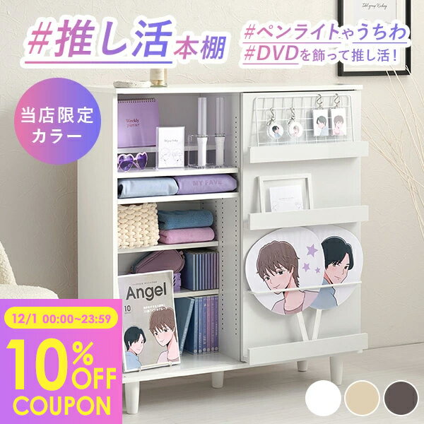 お買い物ガイド 自由に飾って楽しめる大容量本棚「キッカ」 コミックは約400冊も収納できて、マンガ好きにおすすめのアイテムです。 ポールつきのスライド扉には、 面置きしたい雑誌やお気に入りのカードを飾れるだけでなく、 雑誌を支えるバーにキーホルダーを掛けることも。 また棚は前後分割式の可動棚なので、収納の幅が広がります。 ※CD/DVD/文庫本/少年コミック/青年コミック(B6判)/ワイド版/雑誌/教科書など… 段差をつけることで後ろの背表紙を見せることも。 さらに棚位置を工夫して、推し活収納棚として使うこともできるので、 2次元・2.5次元・アイドルなど様々なジャンルのヲタクにおすすめです。 こんなものまで飾ることができるので、オタ活がはかどること間違いなし! フィギア/アクスタ/うちわ/ペンライト/ぬい/写真集/チェキ/カード/同人誌など… 扉をスライドさせることができるので、 普段はグッズを隠したいという方にもおすすめ。 【商品サイズ(約)】幅90.5×奥行37×高さ101.5cm 【梱包サイズ(約)】96×47×17cm(34kg) 【材質】プリント紙化粧パーティクルボード 【生産国】ベトナム 【備考】組立品(プラスドライバー・ハンマーが必要) メーカー希望小売価格はメーカーカタログに基づいて掲載しています推し活におすすめ おすすめアイテム