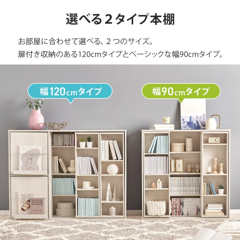 お買い物ガイド 単行本が全段にぴったり収まる、スライド本棚。 文庫本や新書判、青年コミックはもちろん、 四六判も前列後列の全段に並べて収納できます。 前列にはよく使う本を、後列には全巻セットや隠したい本を収納できます。 幅120cmの扉収納付きタイプには雑多なサイズの本をスッキリ収納。 扉にはお気に入りの本を飾って、魅せる収納もできます。 収納する物に合わせて棚の高さを調節できるので、 アクスタやフィギュアなどの小物も収納できます。 スペースが足りなくなったら1台追加して上下に連結することも◎ お部屋になじむ、シンプルなデザイン 木目調の3色からお選びください。 ■幅90cmタイプ 【商品サイズ(約)】幅90×奥行33×高さ92cm 【梱包サイズ(約)】93×39×18cm(28kg) ■幅120cmタイプ 【商品サイズ(約)】幅120×奥行33×高さ92cm 【梱包サイズ(約)】 (1)125×35×13.5cm(19kg) (2)90×40×12cm(18kg) ■共通 【材質】プリント紙化粧パーティクルボード 【生産国】マレーシア 【備考】組立品(プラスドライバー・ハンマーが必要) メーカー希望小売価格はメーカーカタログに基づいて掲載していますおすすめアイテム ▼収納特集