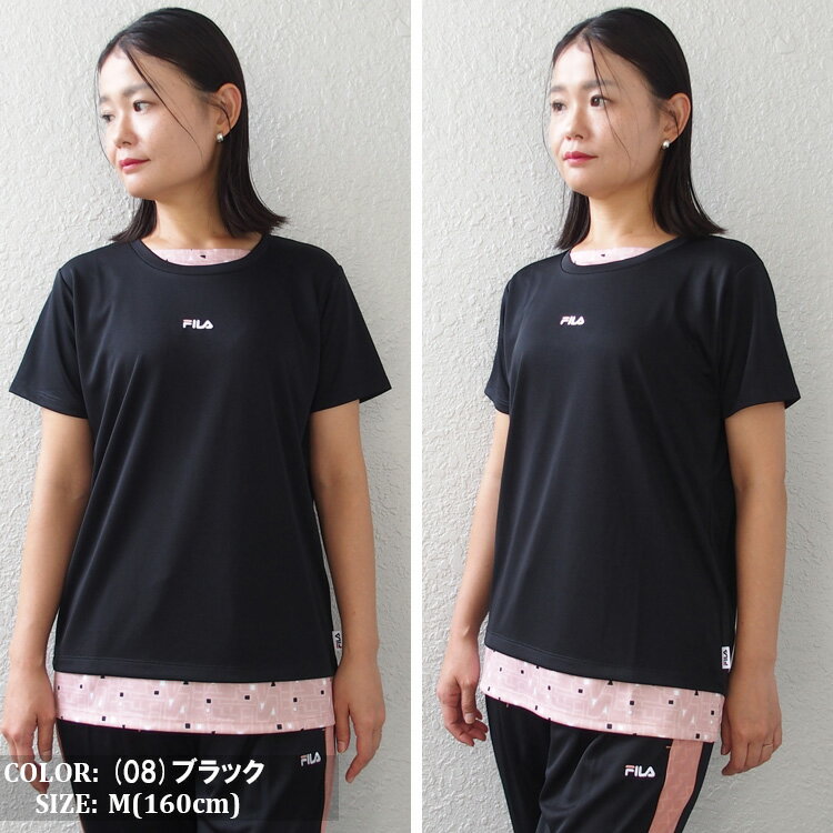 FILA 半袖 Tシャツ フェイクレイヤード メッシュ フィラ FILA レディース レディス スポーツウェア トレーニングシャツ ジョギング ジム 吸水速乾 UV対策 吸汗 ドライ フィット ズンバウェア HIIT [FL7051] 【メール便対応】