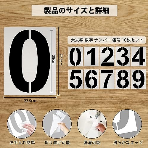 駐車場 番号 10枚セット29.5*22.5cm 大文字 数字 ナンバー 番号 マーキングプレート ステンシルシート番号 プラスチック製 線引き ライン引き 塗装 スプレー 吹き付けプレート 道路線引き 駐車場 繰り返し使 マーキング ライン 吹きつけ 字高さ25cm