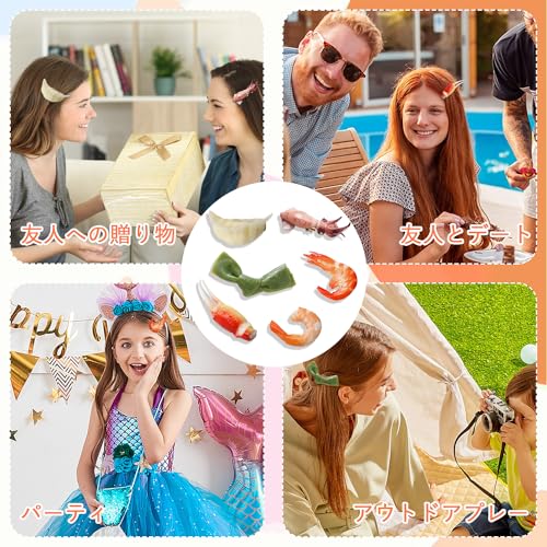 ヘアクリップ 前髪クリップ 食品サンプル クリップ ヘアピン 食品サンプルヘアピン [6個セット]かわいい シーフードサンプルヘアピン 昆布 団子 エビ タコ カニ足 エビ 興味深く DIYヘアクリップ 女の子のヘアクリップ