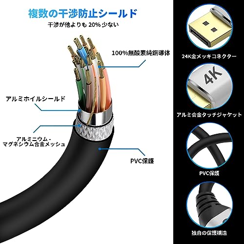 ディスプレイポート ケーブル 15m 4K DisplayPortケーブル 15M ロング 高速ゲーミング 21.6Gbps DP1.2コード 4K 60Hz / 2K 165Hz FreeSync G-Sync HD映画 HDR PC モニターに対応 長い