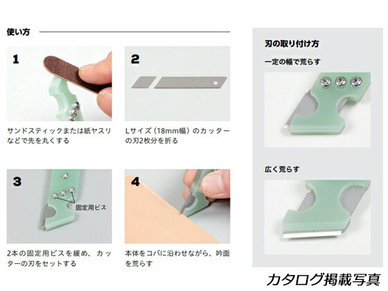 ■型番:C8725■商品名:TY-ぎんすり■販売価格:1760円(税込) / 1600円(税抜)■メール便について:メール便(220円)対応商品です。■発送予定目安:4日以内(日祝日は除く)■商品説明:革の吟面を荒らす専用工具です。Lサイズのカッターの刃を使用し、簡単に一定の幅で吟面を荒らすことが出来るため、接着時に重宝します。※カッターの刃は付属しません、別途ご用意下さい。■取扱いメーカー:クラフト社■関連商品■