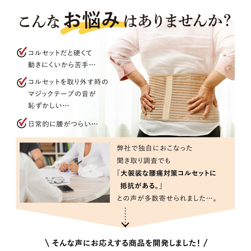 【商品名】華やか腰サポーター / はなやかこしさぽーたー 【商品説明文】 らくらく!ベルトがずれない一体型! 「腰用コルセットは動きづらくて苦手…」「外す時の音が恥ずかしい」 そんなお悩みに共感して開発されたのが、華やか腰サポーターです。 腰ベルトとガードルが一体化した設計で、 腰の負担を軽減しながら、美しい姿勢とスタイルもサポート。 「腰痛対策もスタイルアップも叶えたい!」という方にぴったりのサポーターです。 【商品の特徴】 ズレずにしっかりサポート:腰ベルトとガードルの一体型構造で、動いてもズレにくく快適です。 締め付けすぎない腰ベルト:コルセットのような硬さがなく、ちょうどよい引き締め感を実現します。 骨盤の歪みをサポート:腰ベルトが骨盤を引き締めることで、姿勢改善にもつながります。 通気性のある快適素材:メッシュ素材を採用し、ムレにくく年中快適に使えます。 昼も夜も使える設計:ソフトな着用感で、睡眠中の腰サポートにも対応。 洗濯機でお手入れ簡単:ネットに入れて洗濯機OK。日常使いにうれしい仕様です。 【素材】 身生地、パワーネット:ポリエステル88%、ポリウレタン12% 【サイズ】 ・Mサイズ:ウエスト61~73cm/ヒップ83~96cm ・Lサイズ:ウエスト73~86cm/ヒップ89~103cm ・LLサイズ:ウエスト86~102cm/ヒップ94~109cm 【お手入れ方法】 洗濯機可 ※洗濯時ネット使用 【生産国】 中国製(企画・デザインは日本) 【広告文責】 株式会社ル・キュア (075-468-7260) 【下記のギフトにもおすすめ】 母の日 父の日 敬老の日 プレゼント ギフト 母の日ギフト 父の日ギフト 敬老の日ギフト ギフト対応 ギフトラッピング対応 便利グッズ アイデアグッズ ララフェスタ ▼領収書の発行はコチラ▼ ▼こちらも便利ですよ。類似アイテムもチェック!1,408円3,278円4,378円3,128円5,478円3,278円6,578円3,278円1,470円★注目のNewアイテムはこちら!2025/11/142,200円2025/11/13660円2025/11/12880円◆お待たせしました!再販商品はこちら2025/11/221,000円2025/11/221,000円2025/11/221,320円2025/11/22 更新 https://image.rakuten.co.jp/le-cure/cabinet/campaign/reviewpre-6.jpg