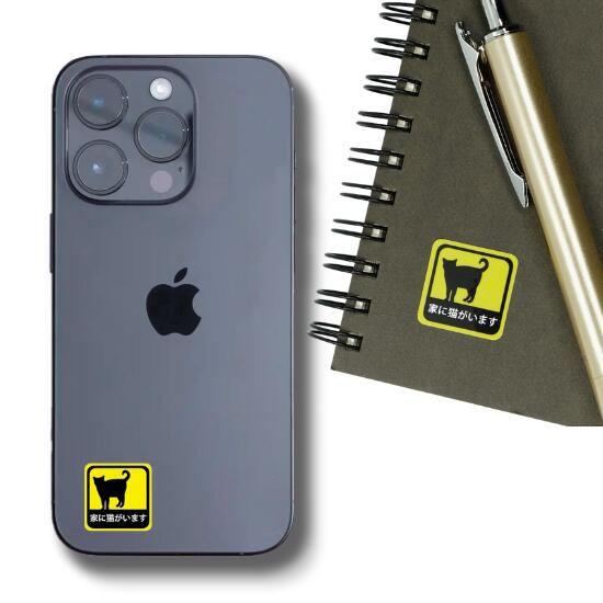 家に猫がいます 猫 ミニ ステッカー 3cm 4枚入り ペット防災 狭い場所にも貼りやすい シール ステッカー 小さい サイズ スマホ ノート 車 日本製 目立つ イエロー ねこ シルエット オシャレ かわいい ギフト プレゼント 保護猫 寄付