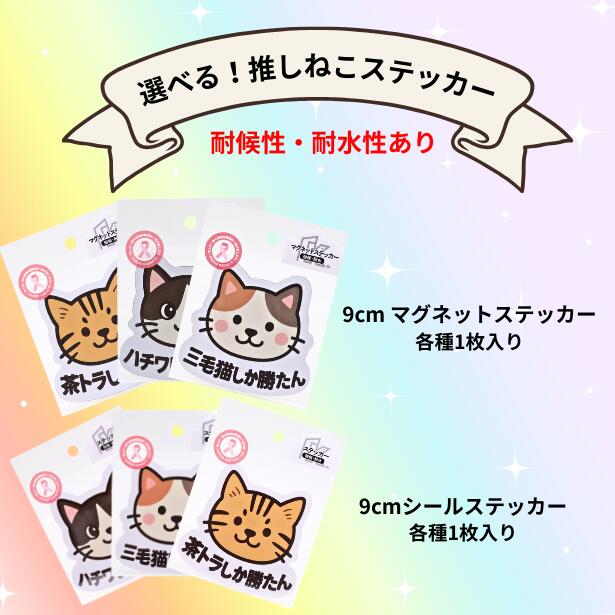 猫 ステッカー \推しねこ/ ステッカー マグネット シール ステッカー 耐水 色褪せにくい 高品質 三毛猫 ミケ 茶トラ ハチワレ ねこ 安全運転 脱走防止 ペット防災 災害 猫好き プレゼント ギフト PC スマホ 玄関 車 窓 保護猫kakuo gadgets