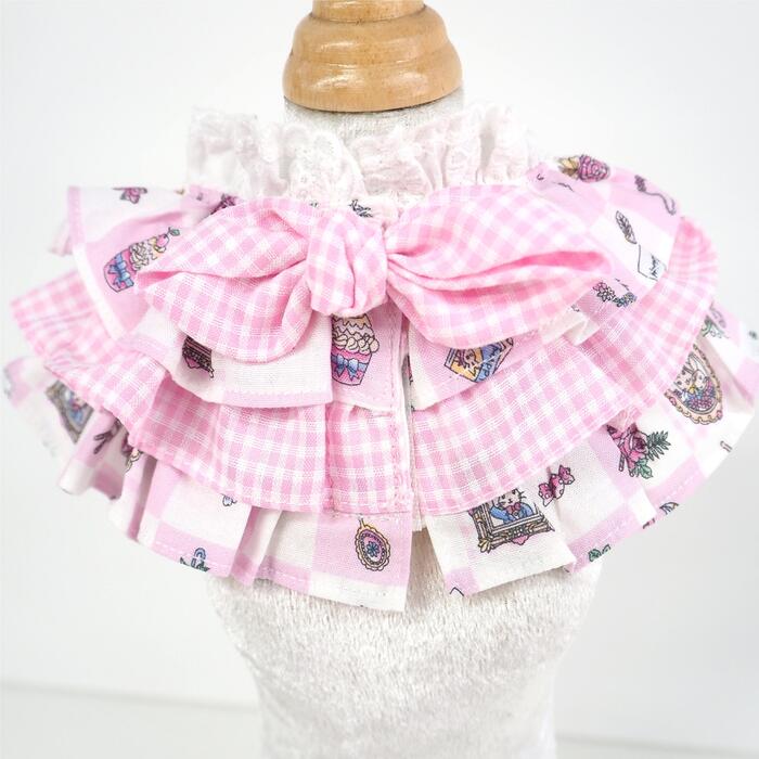 ケープ 1~6号 ネックアクセ ティアードフリル レディ アクセサリー アクセ キレイ かわいい リボン ペット用 極小犬 パピー 超小型犬 小型犬 犬 猫 ストライプ チェック柄 りぼん パステルカラー ペット 服 犬服 猫服 アイテム 返品交換不可