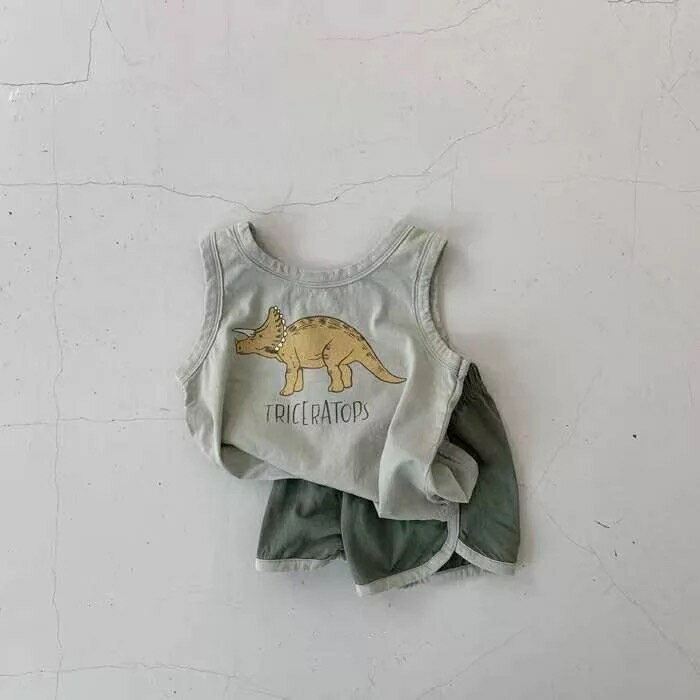 韓国 ベビー服 セットアップ 上下セット 子供服 子ども服 ダイナソー 恐竜 男の子 女の子 ベビー キッズ 春 夏 半袖 夏服 おしゃれ かわいい 保育園 幼稚園 70 80 90 100 子供 べビー服 コットン 綿 カットソー キッズ服 イラスト チェック 半ズボン ハーフパンツ
