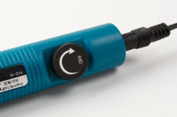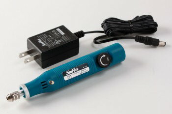 ■商品名:クラフトルーター スリムかつ軽量でありながらパワフルな回転を実現するハンディタイプのルーター。 別売りのコバ磨き先端工具などを装着し、コバを素早く綺麗に仕上げることができます。 ゼロ回転から無段階調節が可能で、先端工具(ビット)の交換も工具不要でワンタッチ脱着が可能です。 仕上げ用のバフなどを装着して、工具のメンテナンスにも使用できます。 ■付属品 ・袋ナット〔先端に取り付け済〕 ・コレットチャック〔袋ナットの中にある軸:1本は取り付け済〕(2.34 mm、3 mm用) 【本体仕様】 定格電圧:DC6V 最大消費電力(最大出力時):20W 回転数:0〜16,000mi-1(rpm) 連続使用時間(定格):10分 寸法: 径24 mm 長さ150 mm 重さ64 g 【ACアダプター仕様】 入力:AC100〜240V(50/60Hz) 出力:DC6V(1.8A) 重さ:約80 g・コードの長さ:1.8 m ※先端工具(ビット)は別売りです。 ■使用方法 <先端工具の取付・交換方法> 1.先端工具に合ったコレットを入れる。(2種類のコレットが付属しています) 2.ロックボタンを押さえる。 3.袋ナットを入れ軽くネジ込む。 4.先端工具を入れ袋ナットを締める。 5.ロックボタンから指を外す。