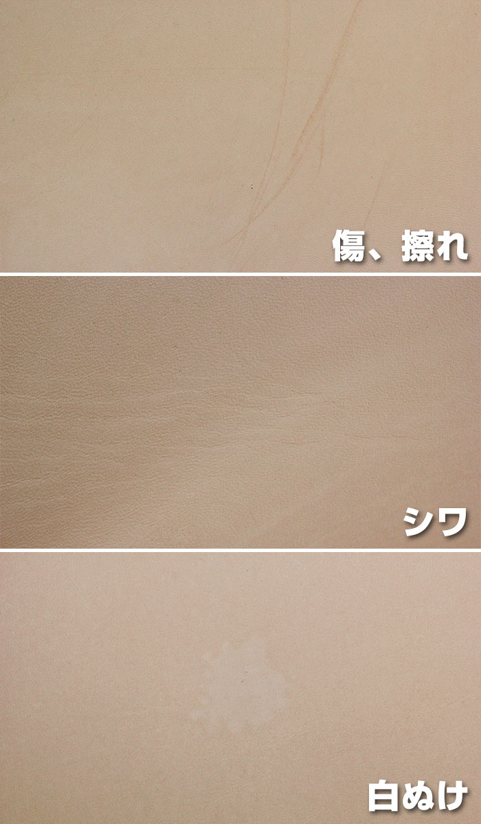 【アウトレット】訳ありタンローA4サイズ×2枚セット サイズ A4サイズ(210x297mm) 厚 み 0.8/1.0/1.5/2.0mm ※厚みについて必ずお読みください 当店の革は半裁を漉いてから裁断を行っております。そのため革の部位や鞣しによって±0.2mm程の誤差が出る場合がございます。お客様にはご迷惑をお掛けしますが予めご了承ください。 素 材 成牛タンロー なめし 植物性タンニン鞣し 色 生成 ※パソコンでの閲覧という特性上、商品の画像が実際の色目と多少異なる場合が有ります。 特 徴一部分に焼け、キズ、スレ、シワ、虫喰い、白ぬけ、漉きミス、などがあり、使える部分がたくさんあるのに出荷できないタンローを2枚セットにしました。練習用、見えにくい部分や小物、小さいパーツなどにご使用ください。 こんな作品にオススメ! 革小物 アクセサリー 財布 小銭入れ コインケース スマホケース カードケース 名刺入れ キーケース 時計ベルト ペンケース メガネケース システム手帳 ポーチ ミニチュア小物 ドール用小物 etc... 皮革 B品 革工芸 ヌメ エイジング 飴色 アメ色 ステアハイド 素材 クラフト 染色 刻印 カービング スタンピング スタンプ スタッズ オイル仕上げ アレンジ 楽しめる お買い得セット A4 革 1mm 2mm 経年変化 エイジング はぎれ ハギレ 端切れ コバ磨き スムース セット販売 (株)中村千之助商店 【注意】この商品は、一部分に焼け、キズ、スレ、シワ、虫喰い、白ぬけ、漉きミス、などがあり、使える部分がたくさんあるのに出荷できない特別価格のアウトレット商品ですので返品不可とさせて頂きます。予めご了承下さい。パソコンでの観覧という特性上、商品画像が実際の色と多少異なる場合がございます。 気になる方は予めサンプル帳をご購入の上、色や質感を確認してからご購入ください。 >>サンプル帳のご購入はこちら!<<