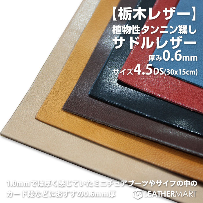 【国産/栃木レザー】サドルレザー (全6色) 0.6mm厚 4.5DS(約15x30cm)【ネコポス対応】日本製 高級 レザー レザークラフト 革 材料 本革 牛革 ヌメ革 皮 天然 カットレザー タンニンなめし カラフル 黒 茶 青 ハンドメイド レザーマート 経年変化 ツヤ はぎれ ハギレ 端切れ