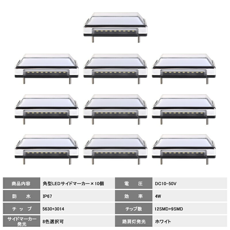改良品 短いタイプ 10個セット トラック&軽自動車兼用 LEDサイドマーカー+路肩灯 角形面発光 ホワイト/アンバー/レッド/ブルー/グリーン/アイスブルー/ピンク/イエロー 8色選択可能 マーカーランプ 12V 24V車用 トラックマーカー LED21連 サイドマーカー 外装