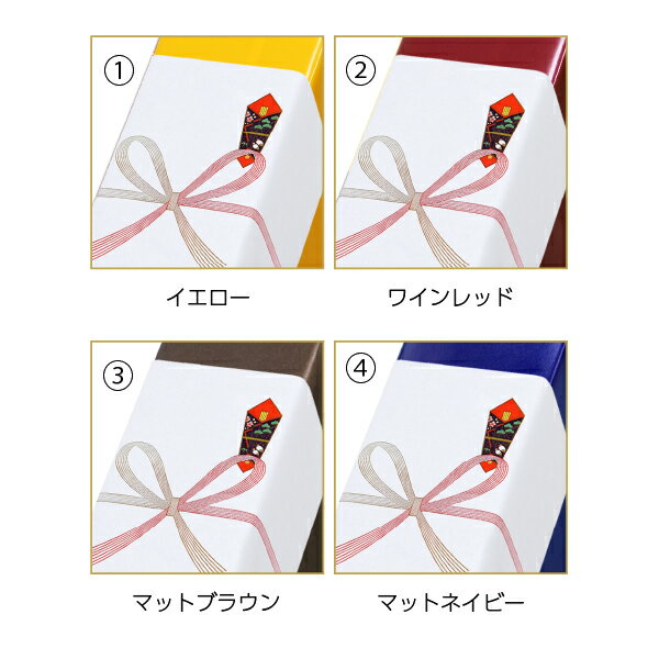 ご結婚、ご出産、お祝いのお返しに。記念すべき良き日のプレゼントに オリジナルラッピングでギフトに特別感を演出しませんか。ご結婚、ご出産、お祝いのお返しに。記念すべき良き日のプレゼントに。フェリシティーのオリジナルラッピングは上品でエレガントな装い。丁寧なラッピングで、大切な贈り物をより一層引き立てます。 選べる4色のオリジナル包装紙 包装紙はイエロー、ワインレッド、ブラウン、ネイビーの4色からお選びいただけます。 包装紙は箱が透けない高級感ある紙質です。用途に合わせてのしの種類をお選びください。 (1)イエロー(艶あり) (2)ワインレッド(艶あり) (3)ブラウン(艶なし) (4)ネイビー(艶なし) 蝶結び 蝶結びは、何度でも結び直せることから、出産祝いや、お中元・お歳暮、お祝い事のお返し(内祝い)など、何度繰り返しても良いお祝いやお礼に用いられます。 【用途】 ・御祝・内祝〈出産・初節句・入学・新築 等各種〉 ・御礼・御誕生日御祝・新築祝い・御中元・御歳暮 ■のしの「表書き」、「掛け方(内のし・外のし)」は用途に合わせて「選択項目」からお選びください。 「お名前」は備考欄へご記入ください。 二重梱包で大切にお届け 商品は、ラッピングに傷つかないよう気泡緩衝材に包んでから梱包、発送します。 ITEM INFORMATION フェリシティーオリジナルの シャンパン・ワイン専用ギフト箱 2本用熨斗掛けラッピング WRAPPING & NOSHI Gift box for 2 bottles size のし掛けラッピング シャンパン・ワイン2本用箱 高級感のあるフェリシティーギフト箱は金色箔押しのロゴが入ったパールホワイトの上品な造りです。 透けにくく高級感のある包装で包み、のしをお掛けします。 ■シャンパン、ワイン(共通)のフルボトル2本が入る専用サイズです。 ■のしの「表書き」、「掛け方(内のし・外のし)」は用途に合わせて「選択項目」からお選びください。 ■「お名前」は備考欄へご記入ください。 ■二重梱包で大切にお届け。ラッピングに傷つかないよう気泡緩衝材に包んでから梱包、発送します。 商品仕様・スペック 商品名のし掛けラッピングシャンパン・ワイン2本用箱 サイズH345×W200×D100 包装カラー4色