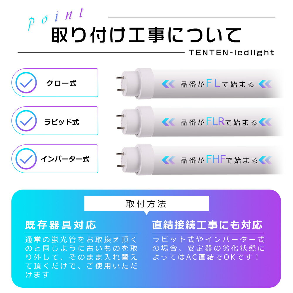 RELATED PRODUCTS関連商品をご紹介 LED直管蛍光灯 LEDコンパクト蛍光灯 LEDベースライト COMBINATIONお得なセット商品をご紹介 10本セット 20本セット 30本セット 50本セット 100本セット ■ SPEC 商品詳細 ■ ■商品名 LED蛍光灯 40W形(工事不要タイプ)【100本入れ】 ■消費電力 20W ■全光束 4000LM ■色温度 電球色3000K/白色4000K/昼白色5000K/昼光色6000K ■照射角度 180° ■口金 G13 ■演色性 ≧Ra85 ■入力電圧 AC100V/200V ■周波数 50-60Hz ■材質 アルミニウム・PC ■サイズ φ30mm×L1198mm ■本体重量 約0.28kg ■定格寿命 50000h ■保証期間 二年 ■ POINT おすすめポイント ■ 【既存器具対応】 電気工事不要で、通常の蛍光管をお取換え頂くのと同じように古いものを取り外して、そのまま入れ替えて頂くだけで、ご使用いただけます。 【グロー式対応 ラピッド式対応(1灯式/2灯式) インバーター式対応(1灯式/2灯式)】 【工事無しで簡単取り付け可能!】 今までネックになっていた配線工事を必要としないタイプです。 【直結接続工事にも対応】 ラピッド式やインバーター式の場合、安定器の劣化状態によってはAC直結でOKです! 【長持ち&省エネ】 LED照明として、電気代を大幅にカットできます。定格寿命50,000時間あるので、交換の手間もあまりかかりません。 【即時点灯】 点灯遅延なし。電源を入れる瞬間、明るくなれます。 【高品質SMD LEDチップ】 耐久性が高いSMD LEDチップを採用して、業界高水準となる発光効率200lm/Wを達します。 【高演色性Ra85以上】 高演色で照らされた物が目に見える色を再現できます!インテリアには照明に対する要求が大満足です。 【電磁波ノイズ対策済み】 国際ノイズ規格のCISPR15に準拠、病院などノイズ対策必要な場所にもご満足いただけます。 注意事項 ※がたついたり、ひび割れ、破損している不安定な配線器具には取り付けないでください。 ※器具を布や紙などの可燃物で覆ったり、被せたり、燃えやすいものに近付けたりしないでください。 ※器具を指示以外の分解・修理・改造・部品交換をしないでください。 ※異常・故障時は直ちに使用を中止してくだい。 ※取り付け、取り外しや清掃のときは、必ず電源を切る。(感電の恐れがあります) ■商品についてご不明点や質問などがありましたら、お気軽にお問合せください。年中無休にてお客様のお問合せに対応いたします。 アフターサービス ■商品についてご不明点や質問などがありましたら、お気軽にお問合せください。年中無休にてお客様のお問合せに対応いたします。 ▼検索ワード led蛍光灯 40w型 120cm 昼光色 led蛍光灯 40w形 直管 led蛍光灯 40w 120cm led蛍光灯 40w 3000lm led蛍光灯 40w形 led蛍光灯 直管 40w型 40w led蛍光灯 ラピッドスタート led蛍光灯 直管 40w LED蛍光灯 40w形 直管 led蛍光灯 丸型 led蛍光灯 工事不要 led蛍光灯 20w形 直管 led蛍光灯 40w形 直管 led蛍光灯 直管18w形 LED照明ランプ LED照明 天井 LED蛍光灯器具 ベースライト 施設照明 店舗照明 高輝度 グロー式 インバーター式 LED 直管 照明 LEDランプ 蛍光灯 LEDライト 省エネ 長寿命 直管ランプ 直管LED 工事不要 節電 led蛍光灯 40w 120cm 120 40形 蛍光灯 40w形 led 直管 インバーター式 インバーター グロー式 工事不要 直管蛍光灯 直結 40形直型管 led蛍光管 直管型LEDランプ 直管蛍光灯 両側給電 直管蛍光灯 10W 直管蛍光灯 20w 直管蛍光灯 led 工事不要 直管蛍光灯 fhf24 直管蛍光灯 電球色 15形 直管蛍光灯 fl20ssw/18−b fl20 直管蛍光灯 fl40ss・w/37 直管蛍光灯 FL40SS-ENW/37 FL40S 青白色 FL40SS FL40SSENW37HF3 fl40 ledランプ fl40 蛍光灯 led fl40ss fl40ss 点灯管 fl40ssd37 FLR40S FHF32 FHF32EX-N led蛍光灯 直管 40W型 LED蛍光灯 20W形 20型 20形 40W形 40型 40形 直管LED蛍光灯 電球色 昼白色 昼光色 LED蛍光灯 led 直付型 直管蛍光灯 LED蛍光灯 直管型LED蛍光灯 LED 照明 LEDランプ 蛍光灯 LEDライト 施設照明 LED施設照明 家庭照明 店舗照明 商業照明 ベース照明 ダイニング用 キッチンの天井照明 リビング照明 お洒落 シンプル 長い蛍光灯 軽い 性能高い 580mm 1198mm 58cm 120cm 直管LED 節電 G13 直付式 両側直結対応 グロー式対応 天井直付型 工事不要 取付け簡単 取付方法簡単 工事しやすい 防虫 コスト削減 節電 エコ 省エネ 長寿命ランプ 耐久性 長持ち 1年保証 高輝度 広配光 電源内蔵 安心 安全 家 会社 ホテル 図書館 レストラン スーパーマーケット 病院 オフィス 事務所 学校 展示場 駐車場 工場 倉庫■ SPEC 商品詳細 ■ ■商品名 LED蛍光灯 40W形(工事不要タイプ)【100本入れ】 ■消費電力 20W ■定格光束 4000lm ■色温度 電球色3000K/白色4000K/昼白色5000K/昼光色6000K ■照射角度 180° ■口金 G13 ■演色性 ≧Ra85 ■入力電圧 AC100V/200V ■周波数 50-60Hz ■材質 アルミニウム・PC ■サイズ φ30mm×L1198mm ■本体重量 約0.28kg ■定格寿命 50000h ■保証期間 二年 ■ POINT おすすめポイント ■ 【既存器具対応】 電気工事不要で、通常の蛍光管をお取換え頂くのと同じように古いものを取り外して、そのまま入れ替えて頂くだけで、ご使用いただけます。 【グロー式対応 ラピッド式対応(1灯式/2灯式) インバーター式対応(1灯式/2