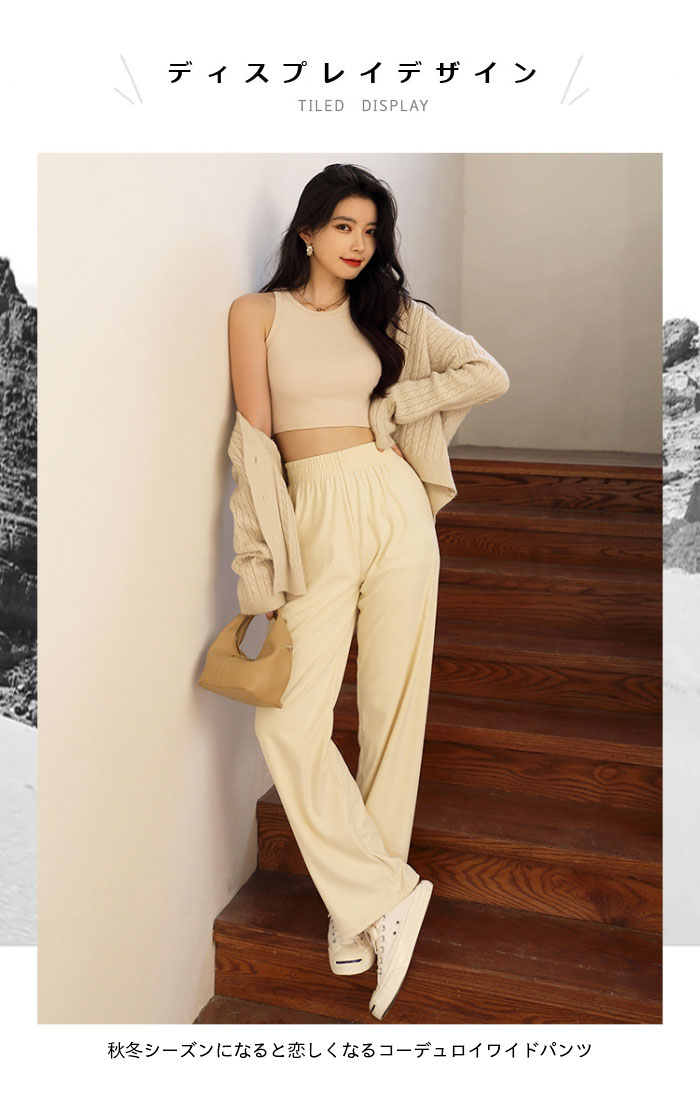メーカー希望小売価格はメーカーカタログに基づいて掲載しています秋冬シーズンになると恋しくなるコーデュロイワイドパンツ。 ラインは体形をカバーしつつ今っぽくキマるワイドシルエット。 ウエストはゴムになっているので着脱も楽チンで、普段使いにも最適。 さらに軽くて柔らかい生地だから履き心地も抜群です。 《1》すっきりハイウエスト仕様?、ゆとりのあるストレートタイプ 《2》ワイドシルエットが、脚を細く長く見せる効果? 《3》着脱も楽チン ■カラー:ブラック ベージュ ライトブラウン ブラウン ■サイズ【cm】: パンツ: M 着丈98 ヒップ94 ウエスト30 体重40〜53kg L 着丈100 ヒップ100 ウエスト32 体重53〜65kg XL 着丈102 ヒップ106 ウエスト34 体重65〜80kg ■生産:中国製 ■宅配便送料無料である場合は ※北海道・沖縄県・九州地方は別途地域料として400円を頂戴しております。 素材 ポリエステル 洗濯表示 上記サイズ表はスタッフが採寸し、製品の実寸を掲載しております。 製品ごとに公開サイズと多少の誤差が生じる場合がございますので、予め御了承くださいませ。 ※サイトに掲載されている商品は、お客様のモニター環境等により、実際の物と素材感・色が多少異なる場合がございます。予めご了承ください。 ※サイズは平置きでの実寸サイズを測っているため誤差がでる場合がある旨ご了承下さい。 ※大量生産による生産過程におきまして、若干の個体差(2cmから3cm)が生じる場合がございます。 ※当商品は海外輸入品の為、生産過程において多少のほつれ等が生じている場合がございますのであらかじめご了承くださいませ。 ※『送料無料』の表示に関しましては日本国内限定となります。海外発送は別途送料が必要となりますのでご了承くださいませ。 ※同じ商品でも生産ロットにより色、サイズや生地感が多少異なる場合がご ざいます。