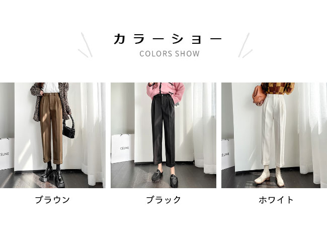 テーパードパンツ 厚手 レディース 秋冬 サルエルパンツ 着痩せ ロールアップ パンツ 無地 ボトムス ハイウエスト スーツパンツ 体型カバー キレイめ 長ズボン おしゃれ ブラウン ブラック ホワイト