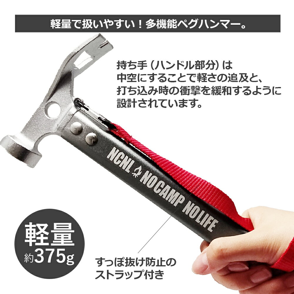 【スーパーSALE★10%OFF】 NCNL(NO CAMP NO LIFE) ペグハンマー シルバー テントハンマー キャンプハンマー 軽量 キャンプ ソロキャンプ キャンプ用品 ストラップ付き