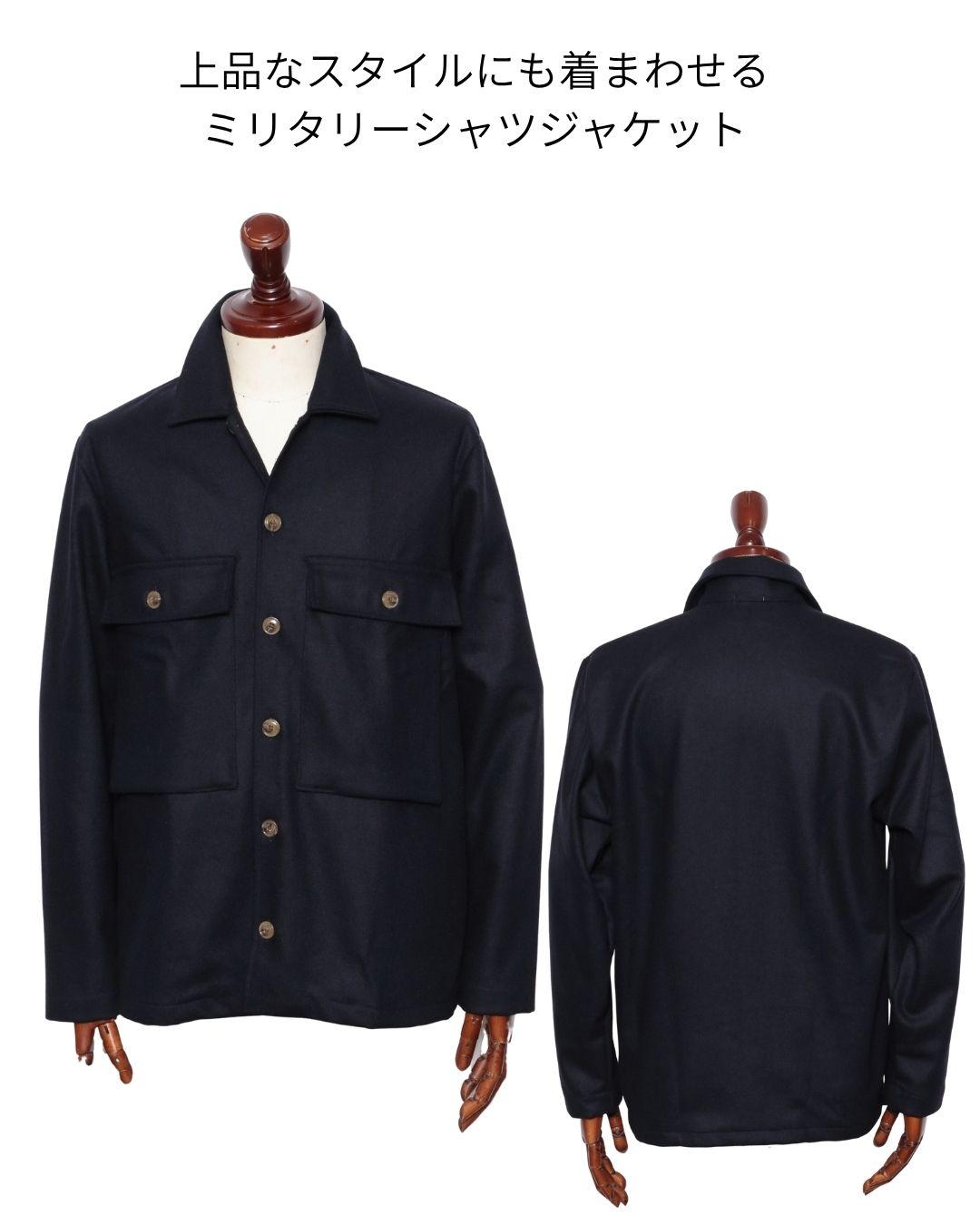 素材アクリル50% ポリエステル 25% ウール20% 指定外繊維5%生産国イタリア上品なスタイルにも着まわせるミリタリーシャツジャケットイタリアンシャツの名門 GUY ROVER(ギ・ローバー) が手がける上質な素材感と緻密な仕立てが際立つCPOジャケット。無骨なCPOをベースにしながらも、ボタン位置や襟の形、ポケットのバランスなどイタリアブランドならではの洗練が光る一着です。アクリル×ウールのブレンド生地は軽くしなやかで、ウール特有の柔らかな温もりを感じながらも型崩れしにくい絶妙なバランスです。 メランジ調のネイビーが深みを生み、秋冬の装いに上品な陰影を添えます。上からコートを羽織ってもシルエットがもたつかず、インナーとしても活躍します。 スタイリングは、ウールスラックスやイージースラックスなどと合わせた大人のネオトラッドスタイルがおすすめ。 インナーにタートルネックやモックネックを挟めば、柔らかな色気と上品なリラックス感を両立できます。 デニムでドレスダウンしても、素材の質感が品格を保ち、カジュアル過ぎない印象に。 ビジネスカジュアルから休日の街歩きまで、“ラグジュアリーを日常に落とし込む”というGUY ROVERらしさが凝縮された一枚です。GUY ROVER / ギ ローバー 北イタリアに位置するピアツェンツァで、1967年に設立されたシャツ専業メーカー「GUY ROVER(ギ ローバー)」。マシンメイドを得意とする丁寧な物作りと、それを反映した比較的リーズナブルなラインナップには、世界中に多くのファンが存在します。この愛され続ける老舗ブランドが生み出すシャツの魅力と、そのコストパフォーマンスの高さを手に取って体験して下さい。