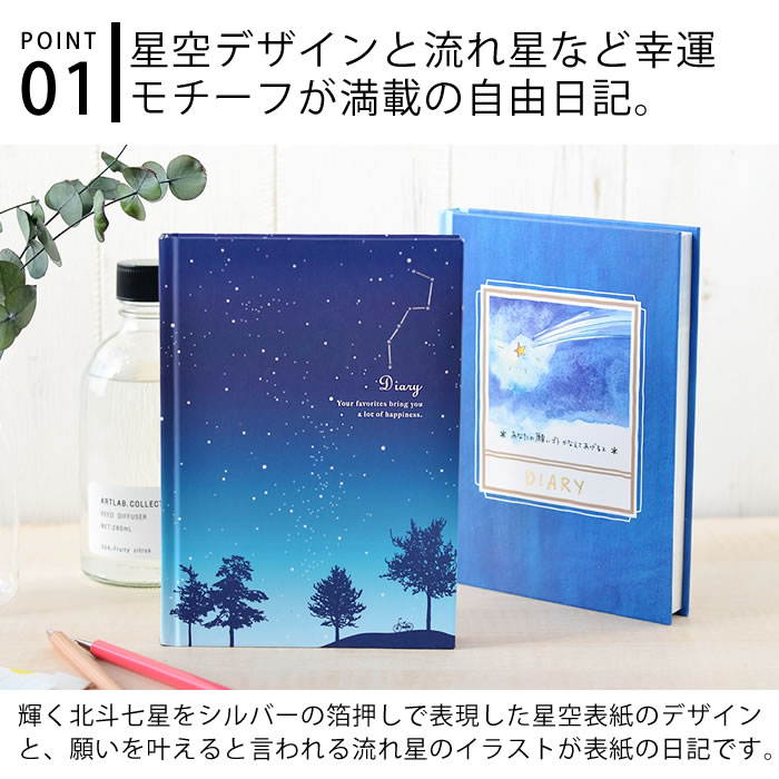 【1月1日はポイント最大10倍祭】日記 日記帳 日記 星空柄 流れ星柄 デザインフィル ミドリ 日本製 ハードカバー おうち時間 ダイアリー かわいい プレゼント おしゃれ シンプル 新生活 12389006 12205006