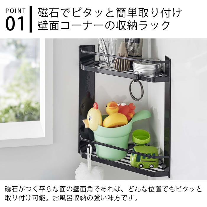 お風呂 ラック マグネットバスルームコーナーラック タワー 2段 tower マグネット ラック 磁石 浮かせる収納 浴室収納 おしゃれ おもちゃ収納 白 黒 壁掛け 山崎実業 yamazaki ヤマジツ タワーシリーズ 6623 6624