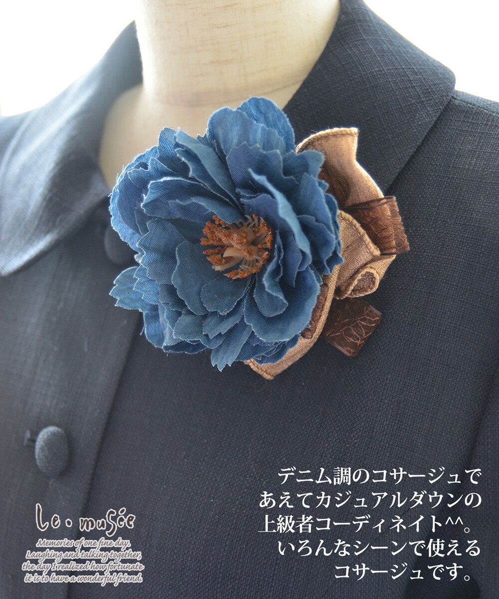 コサージュ 入学 入園式 デニム調ピオニーコサージュ | 卒園式 卒業式 発表会 結婚式 およばれ おしゃれ 上品ミュゼ 大人 セレモニー デニム ブルー