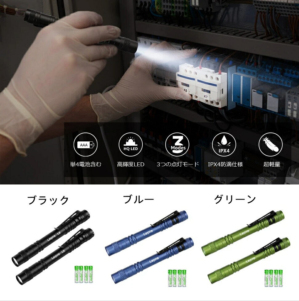 【1年保証】2個セット LED 懐中電灯 小型 led ペンライト高輝度/明るさ120ルーメン/3段階調光/防水/アルミ合金製/高耐久懐中電灯 ペン型 クリップ付き 携帯便利 作業 懐中電灯夜散歩 防災ライト ハンディライト単四電池付属 型番:pr120023-2