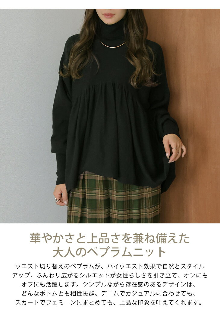 【半額クーポン対象】ペプラム リブニット 長袖 ハイウエスト 美シルエット 体型カバー フェミニン おすすめ 2025秋冬新作【lestpaw25-1758】【予約販売:11月20日入荷予定順次発送】【送料無料】メ込4
