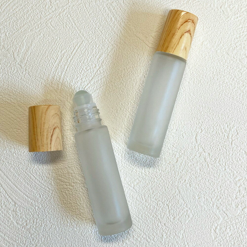 【 木目キャップ ロールオンボトル 】 ガラスボール 10ml フロスト加工 ガラス製 詰替容器 遮光 アロマ 精油 エッセンシャルオイル キャリアオイル 香水 パフューム ウッド ナチュラル