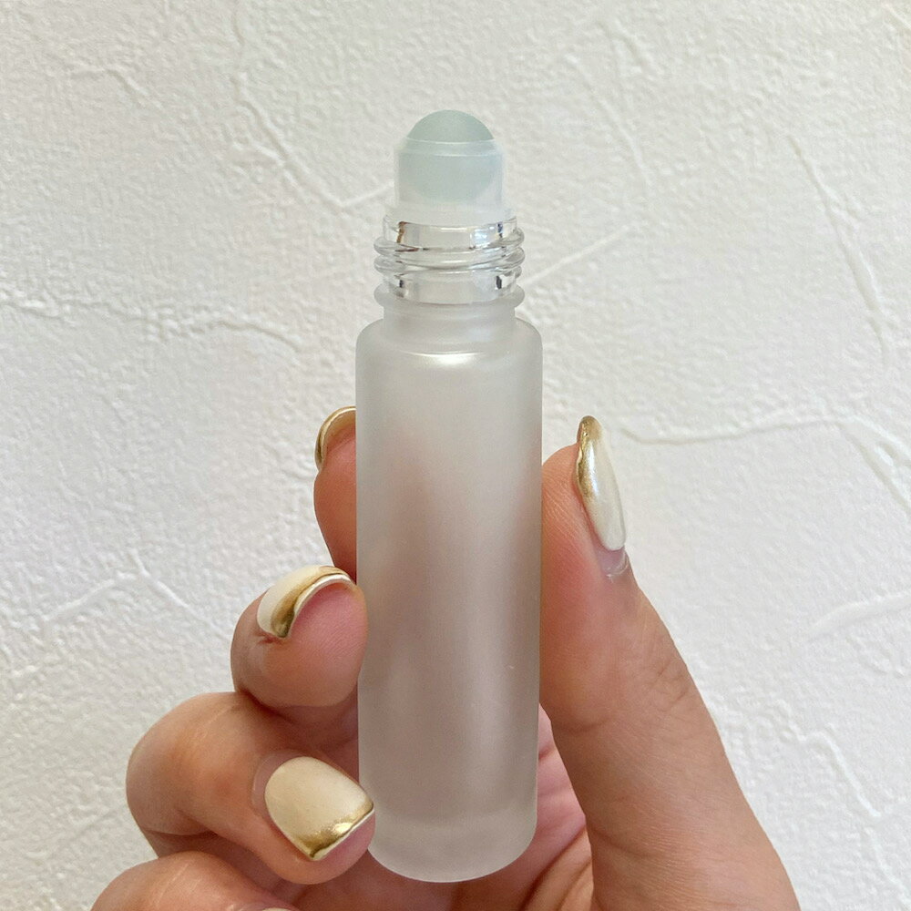 【ロールオンボトル】ロールオン部分:ガラス 持ち歩きに最適な10mlサイズ ボールをくるくるすると液体が出てくるロールオンボトルです。 乳白色が美しく遮光性のあるフロスト加工されたボトル、 ロール部分は繊細なガラス製になっています。 キャップはプラスチック製ですので安心してお使いいただけます。 木目のデザインが少しずつ柄が違うので本物の木のような個性が楽しめます。 お気に入りの香水やアロマを入れて、好きな香りをお楽しみください。 【内容】ロールオン ボトル1本 【種類】フロスト 【素材】ガラス製(本体・ロールオン部分) プラスチック(キャップ) 【容量】 10ml 【サイズ】縦 85mm ×横 19mm 【重量】30g