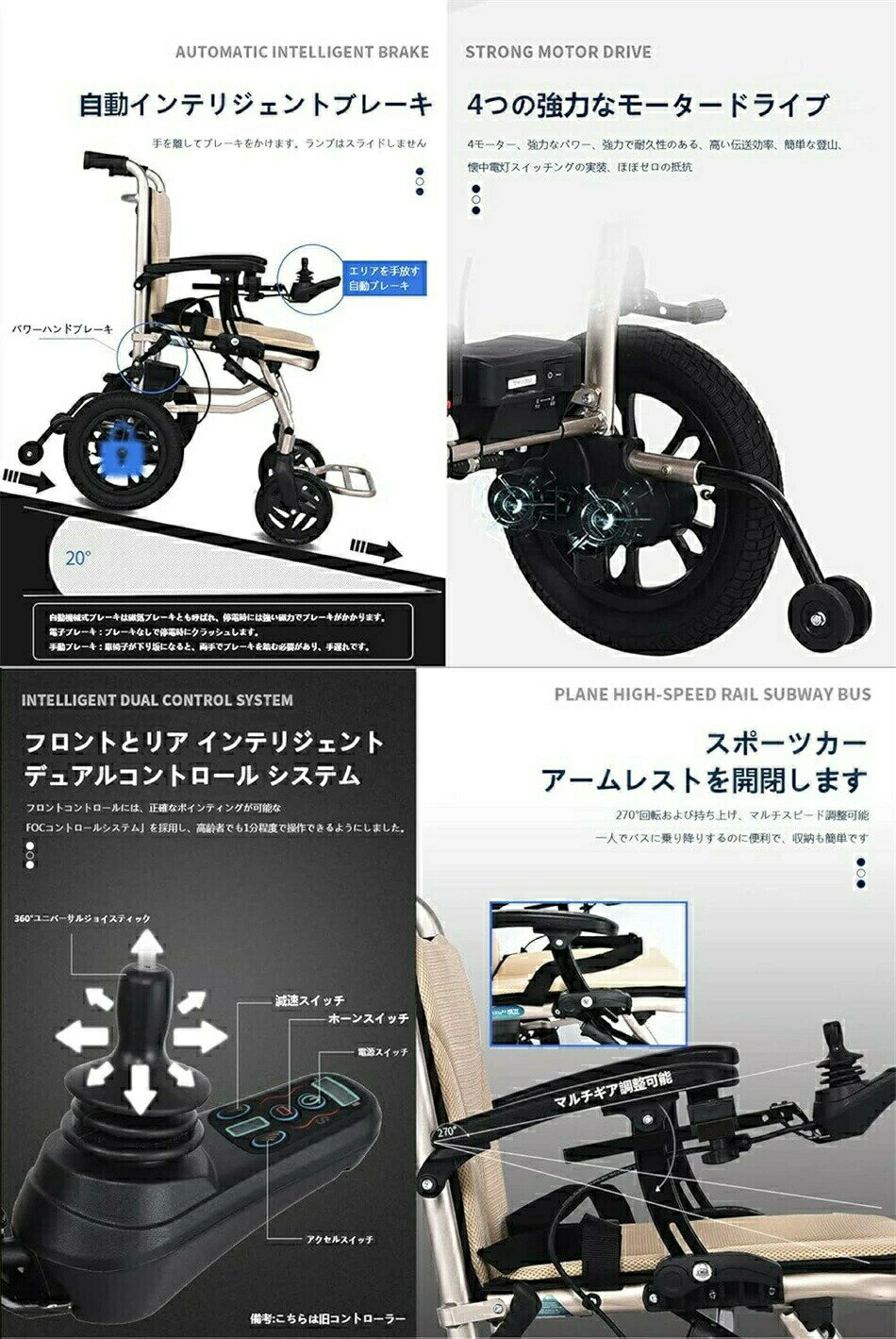 電動車椅子 介護式、車いす 軽量 折り畳み 電動 車椅子 折りたたみ 軽量 コンパクト 高齢者障害者用アルミ合金折りたたみ 車イス/スマート電磁ブレーキ/リリース360°ジョイスティック/自動ブレーキ/取り外し可能なデュアルバッテリー/フロントとリアのコントロールで