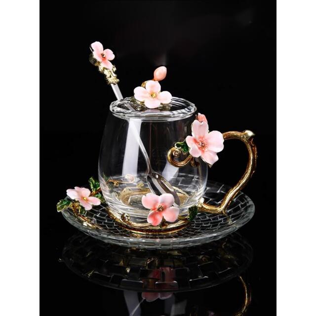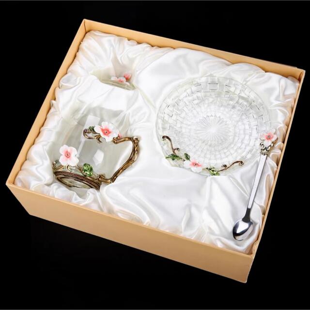 花柄ガラス製 ティーカップ 1客セット食器 コーヒーカップ 豪華カップセット