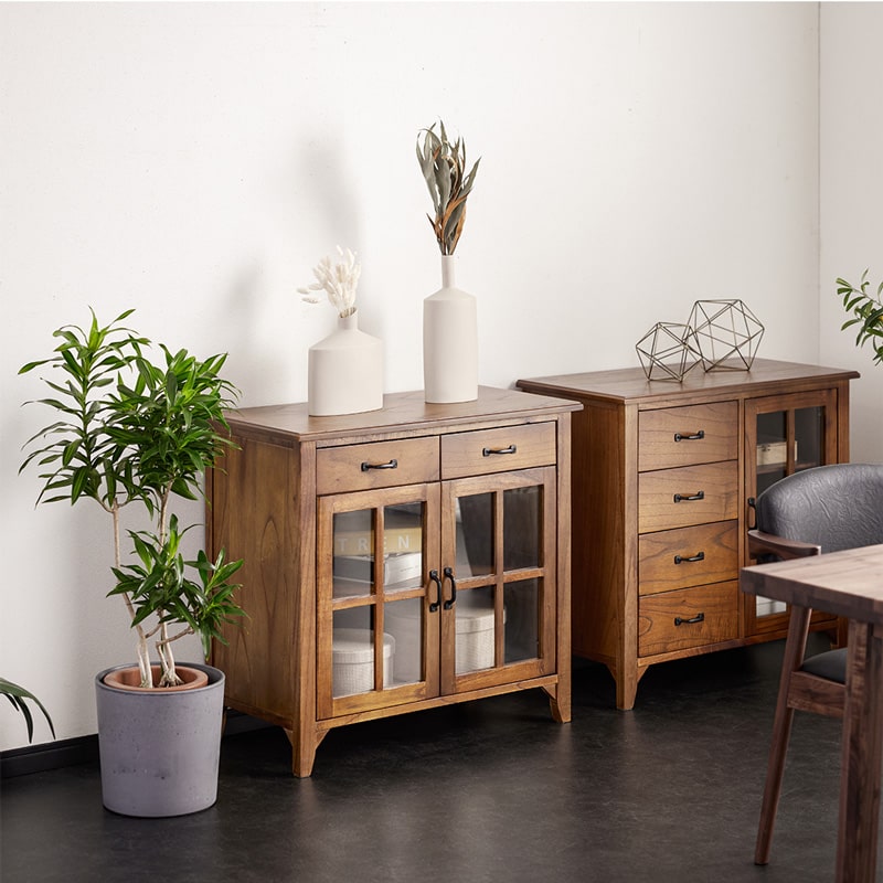 【ポイント5倍!ワンダフルデー12/1】 キャビネット 80 完成品 チェスト 収納 脚付き 無垢 木製 ミンディ ガラス アイアン ガラス扉 引き出 ビンテージ シンプル 北欧 モダン レトロ クラシカル 0454