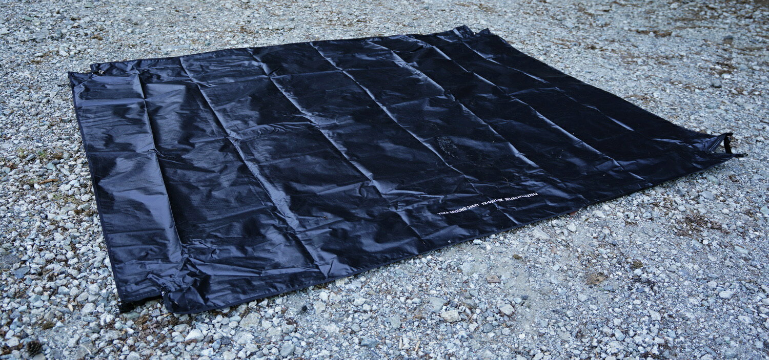 仕様素材:ターポリン 収納時寸法:450x150x150mm 使用時寸法 ・ファスナーを閉じた状態:250×200×12cm ・ファスナーを開いた状態:274×224cm 重さ:3.5kg 付属品:収納バッグ注意事項※モニターの発色によって色が異なって見える場合がございます。YOKA CABIN用グランドシート YOKA CABINの寝室部分にぴったり収まるバスタブ型のグランドシート バスタブ型ですが、四隅のジッパーを開けることで、フラットにすることもできます。 7