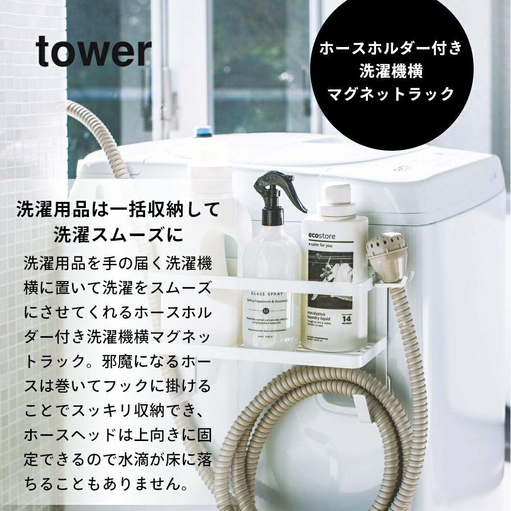 【レビュー特典】 山崎実業 【 ホースホルダー付き洗濯機横マグネットラック タワー 】 tower 4768 4769 シンプル おしゃれ 白 黒 収納 スペース ランドリーラック 洗面所 洗濯機 隙間 横 ホース 洗剤 掃除 ハンガー 小物 雑貨