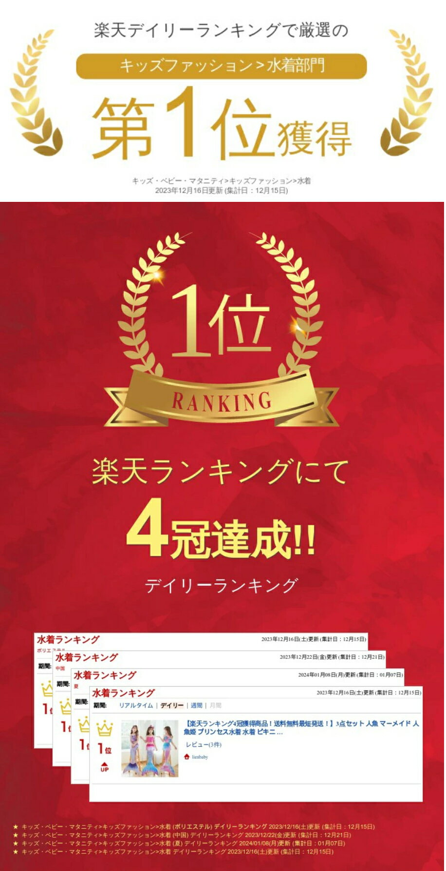 【優良ショップ受賞!楽天ランキング1位4冠達成】3点セット 人魚 マーメイド 人魚姫 プリンセス水着 水着 ビキニ 海 ガールズ 夏 キッズ 子供 ベビー コスチューム 泳ぎ プール かわいい 女の子 プレゼント 保育園 水遊び