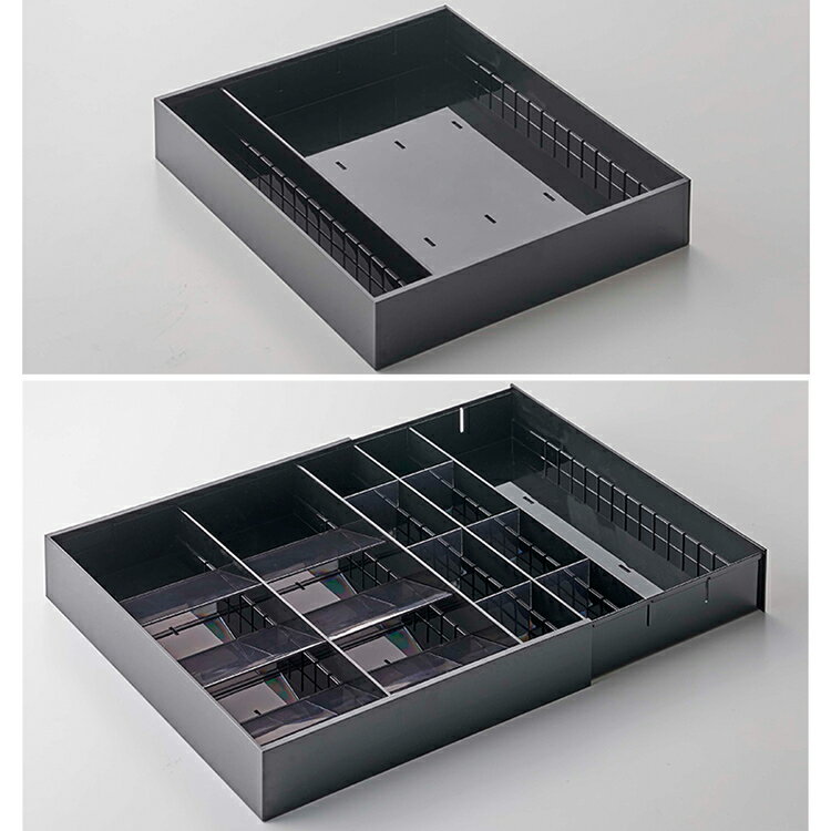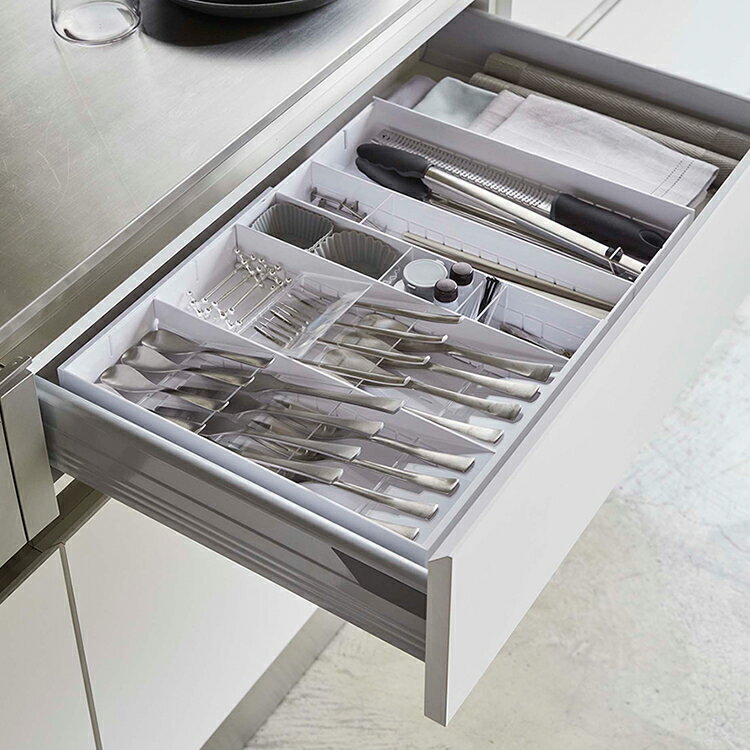 商品詳細 引き出しのサイズに合わせて横に6cmごとに伸縮できるカトラリーケース。3種類の仕切りで引き出しの中を自分仕様にカスタマイズできます。カトラリーとキッチンツールなど大きく仕分けます。仕切りを約2cmごとに調整できる溝が付いています。斜めの仕切りでカトラリーを重ねて収納できるから、収納スペースをより効率よく使えます。お弁当に使う小物や箸置きなどの収納に便利! 商品サイズ 約29.7・35.6・41.5・47.4×35×5.5cm 商品材質 ケース・仕切り(大):ABS樹脂 斜め仕切り・仕切り(小):PS樹脂 滑り止め:シリコーン 商品重量 約1157g 機能 耐熱:90度 耐冷:-40度 原産国 中国立体横伸縮カトラリーケース 引き出しのサイズに合わせて伸縮できるカトラリーケース 伸縮可能で使いやすい 引き出しのサイズに合わせて横に6cmごとに伸縮可能。3種類の仕切りで引き出しの中を自分仕様にカスタマイズできます。 仕切り(大) カトラリーとキッチンツールなど大きく仕分けます。仕切りを約2cmごとに調整できる溝が付いています。 仕切り(小) お弁当に使う小物や箸置きなどの収納に便利です。 斜めの仕切り 斜めの仕切りでカトラリーを重ねて収納できるから、収納スペースをより効率よく使えます。 カトラリーケース 商品一覧 tower蓋付きカトラリースタンド RIN蓋付きカトラリーケース ロング tower立体斜めカトラリーケース tower立体横伸縮カトラリーケース tower伸縮&スライドカトラリートレー