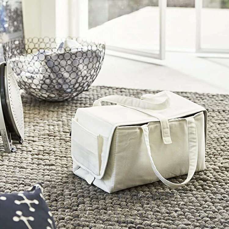 商 品 詳 細 置き場所に困るアイロンを収納! バッグを広げるとアイロンマットに早変わり! 便利なアイロン収納マットです。 ふた部分は、丸めて袖の中に入れて仕上げ馬として使用できます。 サイズ(約) W33XD18XH18cm 収納可能なアイロン 約W30×D16×D16cm以下 重 量 380g 耐荷重 約2kg 耐熱温度 230℃ 材 質 掛け面:綿100%(アルミコーティング加工) 裏面:綿100% 中綿:ポリエステル クッション材:ポリウレタンフォーム(ボンディング加工) 原産国 中国アイロン収納マット アイロン収納バッグがアイロンマットに早変わり 普段はアイロンを収納するバッグとして使えて、広げるとアイロンマットとしてアイロン掛けができます。 収納場所に困るアイロンとアイロンマットがコンパクトに収納できます。 フタは仕上げ馬として使える フタは折って袖の中に入れ、仕上げ馬として使うことができます。 ポケット付き フタにはアイロン小物を入れておくのに便利なポケットが付いています。