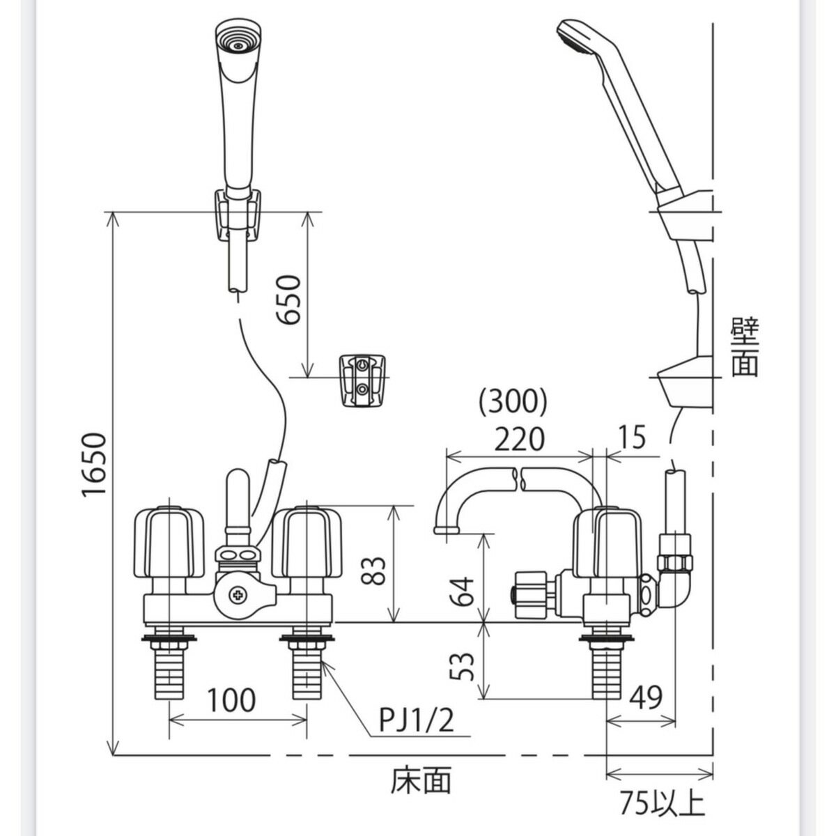 商品情報注意事項モニターの発色の具合によって実際のものと色が異なる場合がございます。【限定在庫・送料無料】KVK KF12E デッキ型2ハンドルシャワー 220mmパイプ付 取付ピッチ100mm シャワーホース白1.45m 白ハンガー 混合水栓 湯水 デッキ型の2ハンドル混合シャワー水栓。 7