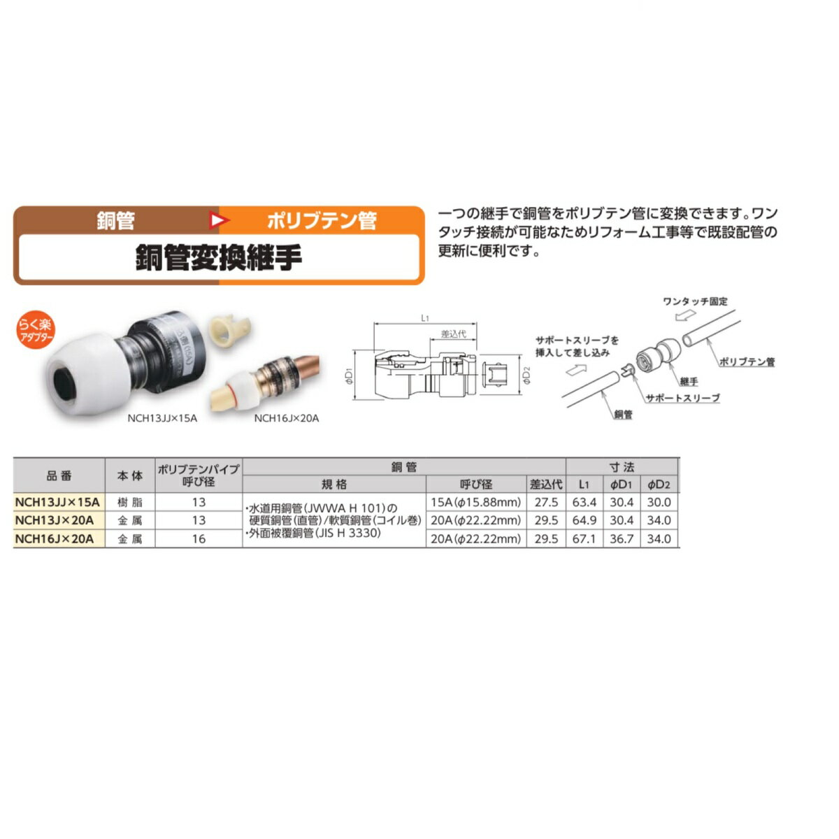 商品情報注意事項モニターの発色の具合によって実際のものと色が異なる場合がございます。【限定在庫・お得な10個セット】ブリヂストン プッシュマスター NCH13JJx15A 銅管変換継手 ポリブデン PB管 【NCH13Jx15AN同等品】 ポリブデン管と銅管のワンタッチ変換継手 7