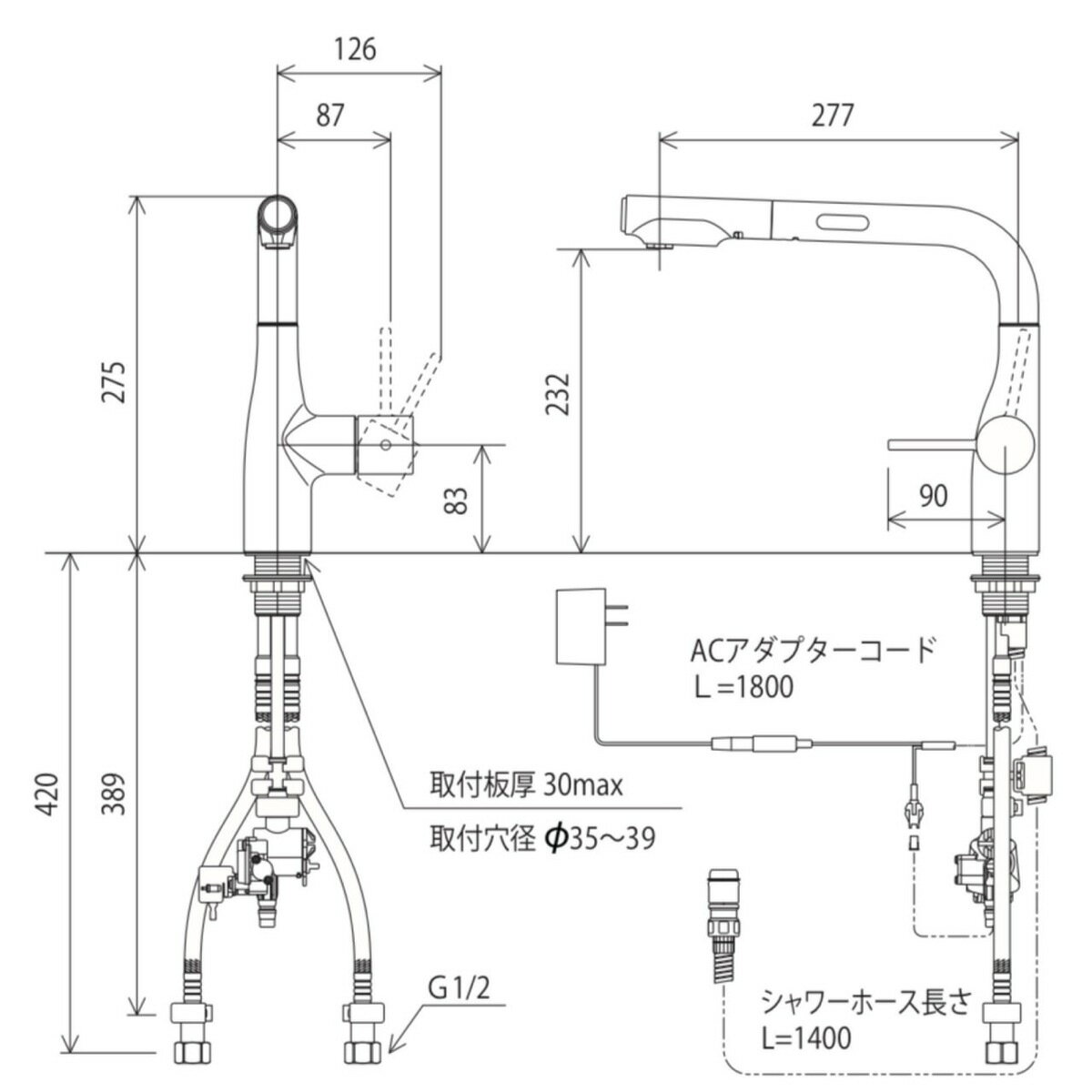 商品情報注意事項モニターの発色の具合によって実際のものと色が異なる場合がございます。【限定在庫・送料無料】KVK KM6111EC シングルシャワー付混合栓センサー式 eレバー 取付穴径φ35〜39対応 277mmパイプ付 シャワーホース引き出しタイプ L型センサー付 AC100V 混合水栓 湯水 キッチン水栓 台所水栓 流し台用水栓 1つ穴 センサー式のホース引き出し型台所用混合水栓。 7