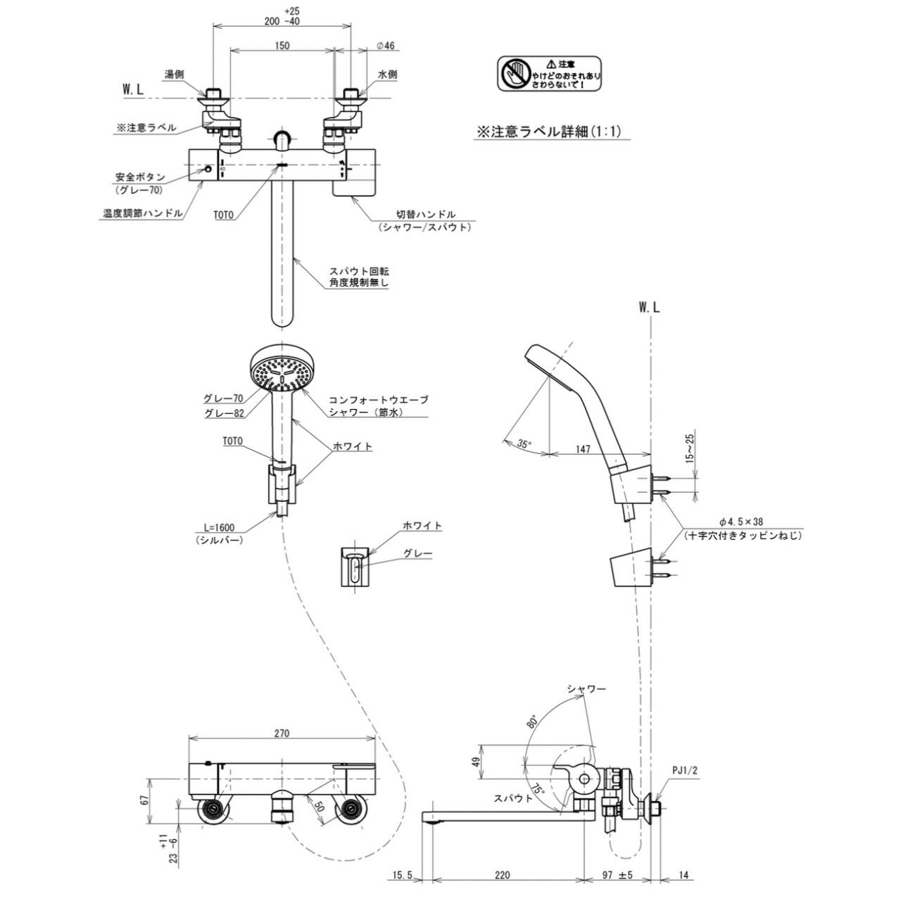 商品情報注意事項モニターの発色の具合によって実際のものと色が異なる場合がございます。【限定在庫】TOTO TBV03406J1 壁付サーモスタット混合水栓 スパウト長さ220mm クランク芯々160〜225mm GGシリーズ コンフォートウェーブ1モード 混合水栓 湯水 浴室水栓 洗い場専用 サーモスタット式混合シャワー水栓。 7