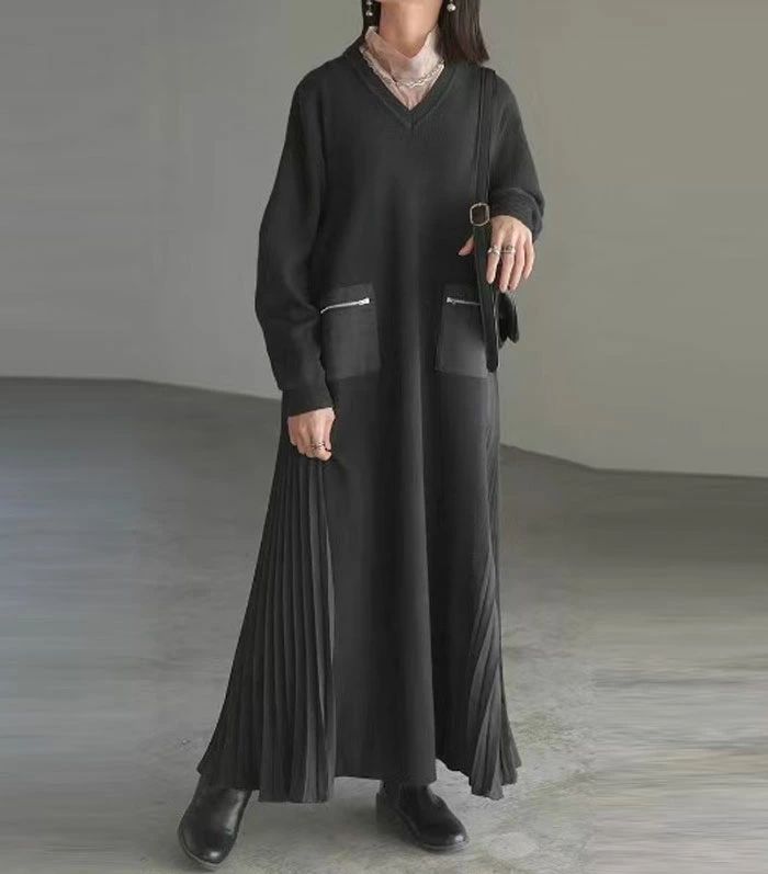カジュアル 秋冬 可愛い カットソー 送料無料 楽ちん 無地 レディース 体型カバー シンプル 異素材 ロングワンピース きれいめ ロング丈 ゆったり マキシワンピース 長袖 大人可愛い 春秋 プリーツ サイドギャザ ワンピース マキシ丈